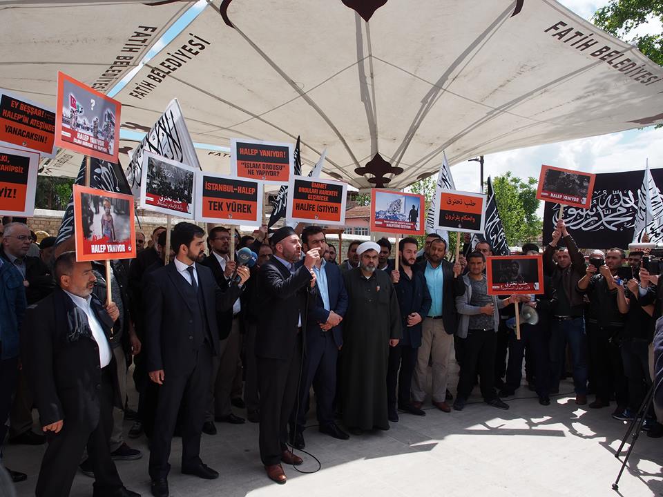 بعد نداء حزب التحرير/ ولاية تركيا، انضم المسلمون في اسطنبول إلى إدانة مجزرة الولايات المتحدة الأمريكية وروسيا في حلب وقاموا بأداء صلاة الغائب على الشهداء في مسجد الفاتح هذا اليوم. هذا الحدث الذي كان بعنوان "جمعة حلب" ابتدأ بإقامة صلاة الجنازة على الغائبين بعد صلاة الجمعة. بعد ذلك، ألقى رئيس المكتب الإعلامي لحزب التحرير في ولاية تركيا، محمود كار، خطابا.