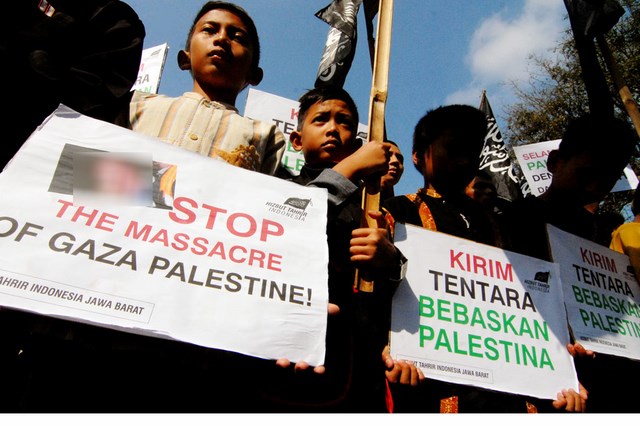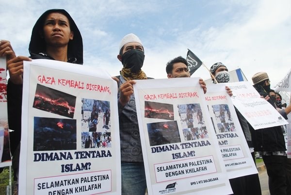 Hizb-ut Tahrir/ Endonezya, yirmiden fazla şehirde Gazze'ye destek amaçlı protesto ve yürüyüşler organize etti. Basın açıklaması yapan Kardeş Rahmi Lebib silahlı güç sahiplerinin (ordunun) destek vermesiyle bir an önce Hilafetin kurulmasını, Gazze'ye ve nerede olursa olsun mazlumlara yardım etmeleri çağrısında bulundu.
