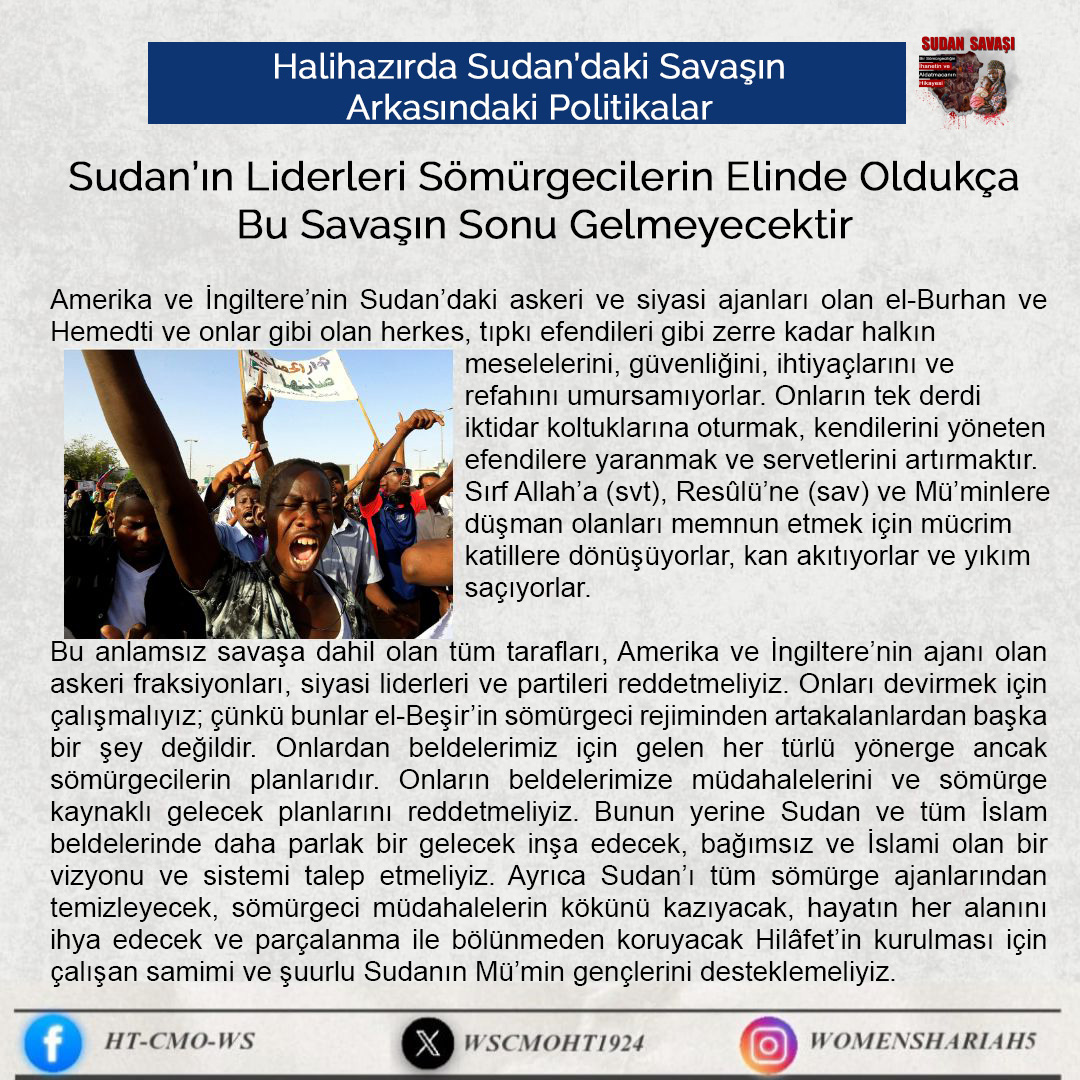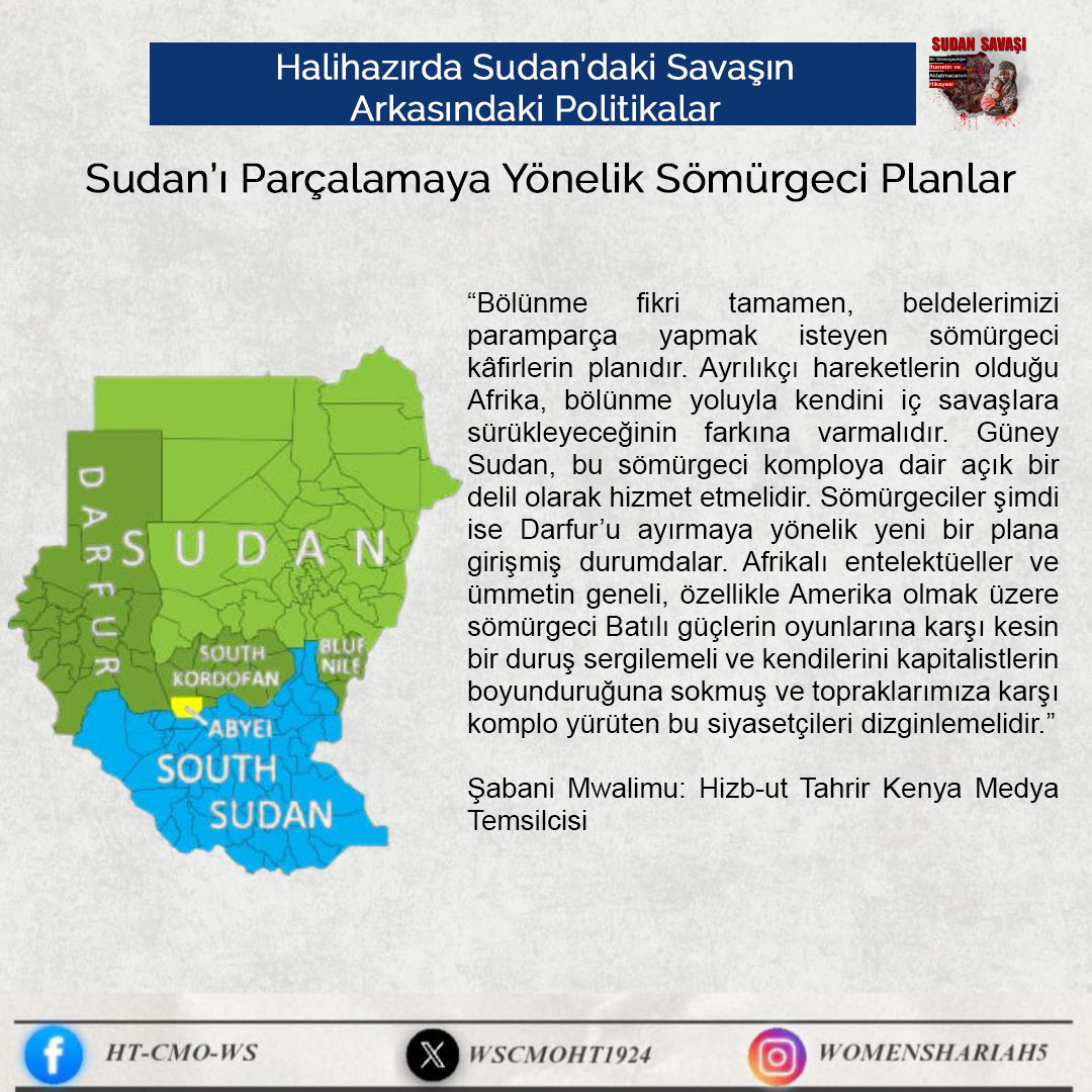 Bu video, Hizb ut Tahrir Merkez Medya Ofisi Kadınlar Bölümü tarafından başlatılan ve “Sudan Savaşı: Bir Sömürgeciliğin, İhanetin ve Aldatmacanın Hikayesi” başlıklı küresel kampanyanın bir parçasıdır. Bu kampanya, “Unutulmuş Savaş” olarak adlandırılan ve ülkeyi saran mevcut çatışmanın sonucu olarak Sudan'daki Müslümanları etkileyen ve giderek kötüleşen insani felakete uluslararası dikkat çekmeyi amaçlamaktadır.