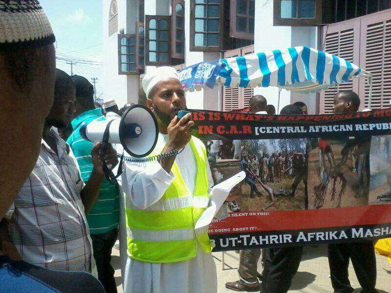 Hizb-ut Tahrir Doğu Afrika, Orta Afrika’da Müslümanlara karşı yapılan katliamları kınamak için Cuma namazı sonrası Mombasa’da stant düzenledi.