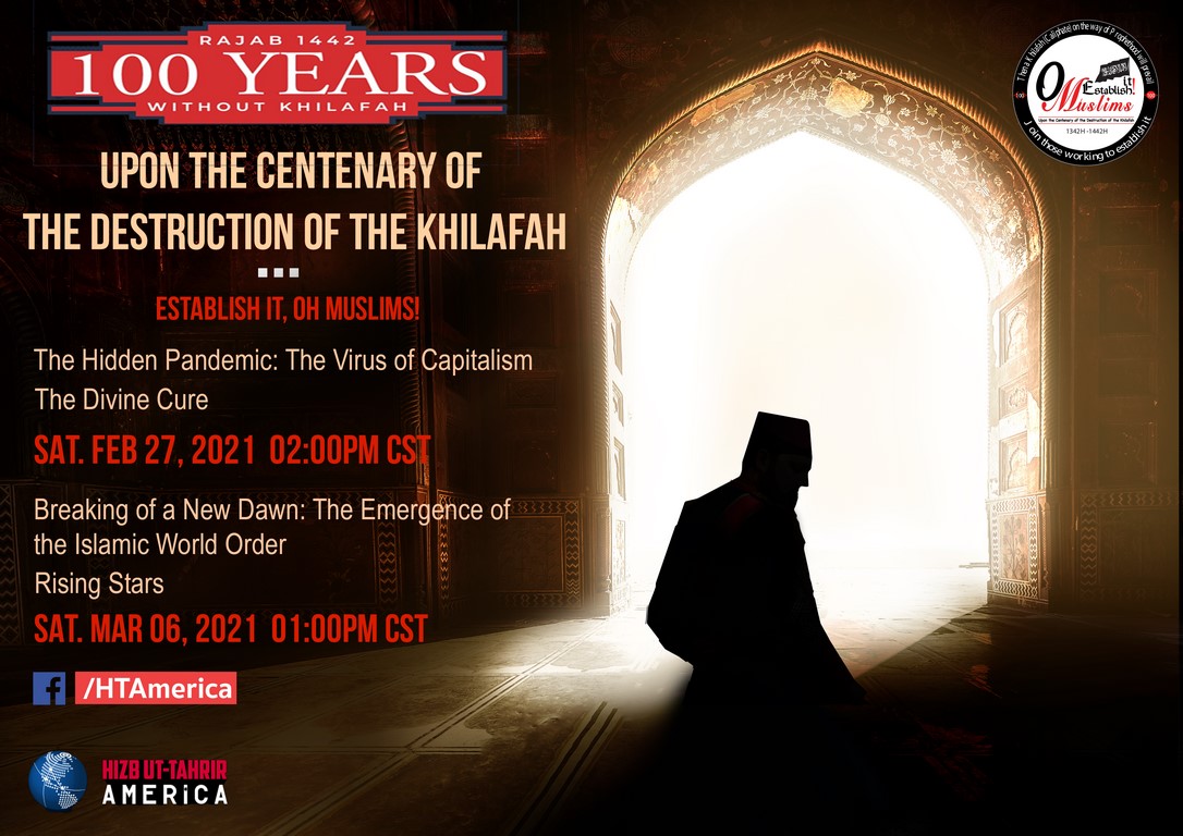 بتوجيه من أمير حزب التحرير العالم الجليل عطاء بن خليل أبو الرشتة حفظه الله أطلق حزب التحرير حملة عالمية واسعة بمناسبة الذكرى الهجرية المئوية لهدم دولة الخلافة، 28 رجب المحرم 1442هـ / 2021م، ومن هذه الصفحة سنقوم بتغطية الفعاليات التي نظمها حزب التحرير / أمريكا في نطاق الحملة العالمية التي أطلقها الحزب.