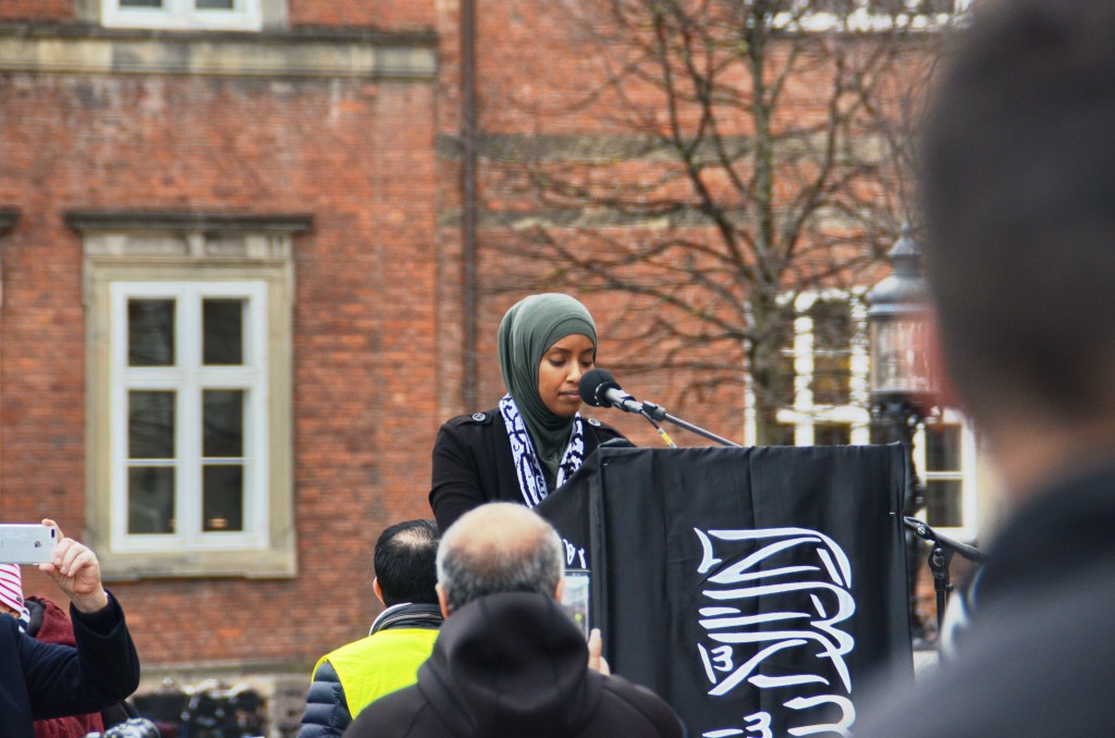 رغم أجواء الخوف التي أشيعت، ورغم تنظيم ثلاث جهات احتجاجا في المكان نفسه ضد حزب التحرير من يهود ويمين متطرف وبعض البرلمانيين إلا أن نحو ألف شخص حضروا الصلاة وكانت الخطبة تتضمن ثلاث رسائل مؤثرة للمسلمين، والسياسيين وللشعب الدنماركي.