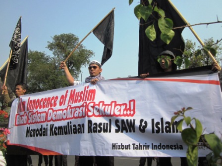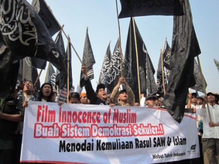 نظم حزب التحرير / إندونيسيا يوم الجمعة 27 شوال 1433هـ الموافق 14 أيلول 2012م فعاليات واعتصمات ومسيرات في المدن الإندونيسية الكبرى من مثل جاكرتا، باندونغ، سورابايا، ماكاسار، وجنوب سولاويسي للتنديد بالفيلم المسيئ للنبي محمد صلى الله عليه وسلم.