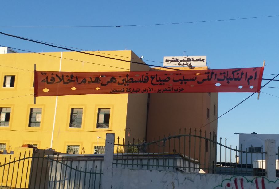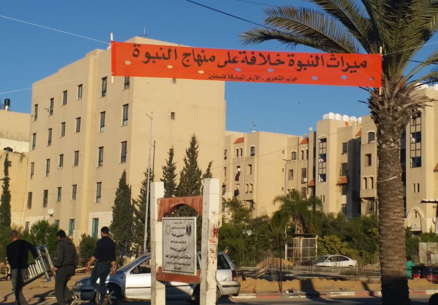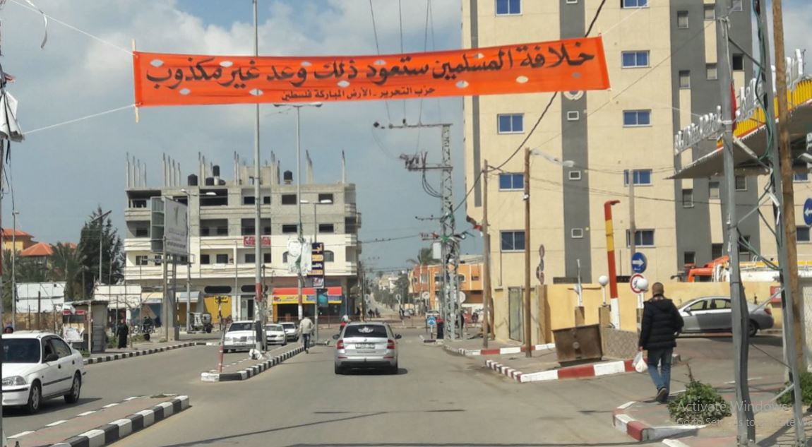 الأرض المباركة: يافطات في قطاع غزة تدعو لإقامة الخلافة وتحرير فلسطين