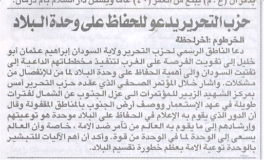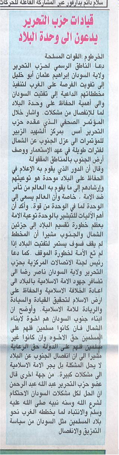 2. صحيفة القوات المسلحة 02/05/2010 العدد (2084) صفحة 3 (هذه الصحيفة ناطقة بلسان القوات المسلحة في السودان، وكثيراً ما تتفادى هذه الصحيفة نقل أعمال الأحزاب).