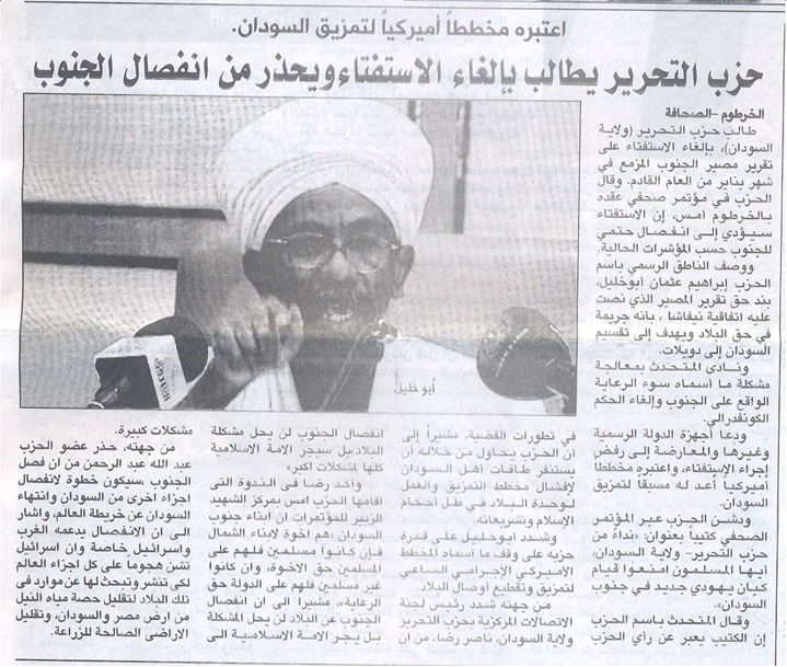 1. صحيفة صوت الأمة يوم 02/05/2010 العدد (236) الصفحة الأولى (الناطق باسم حزب الأمة القومي).