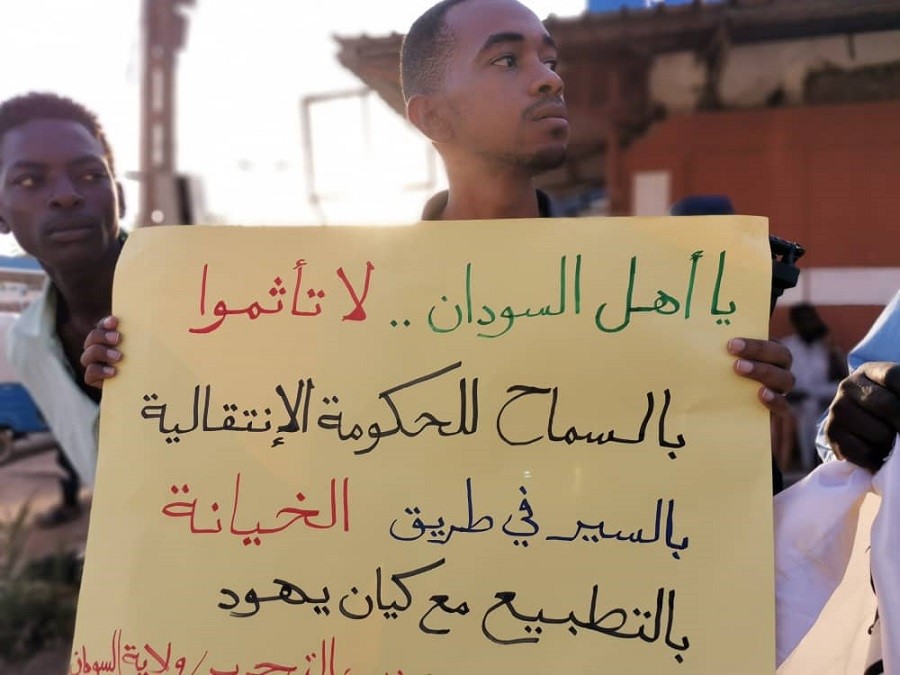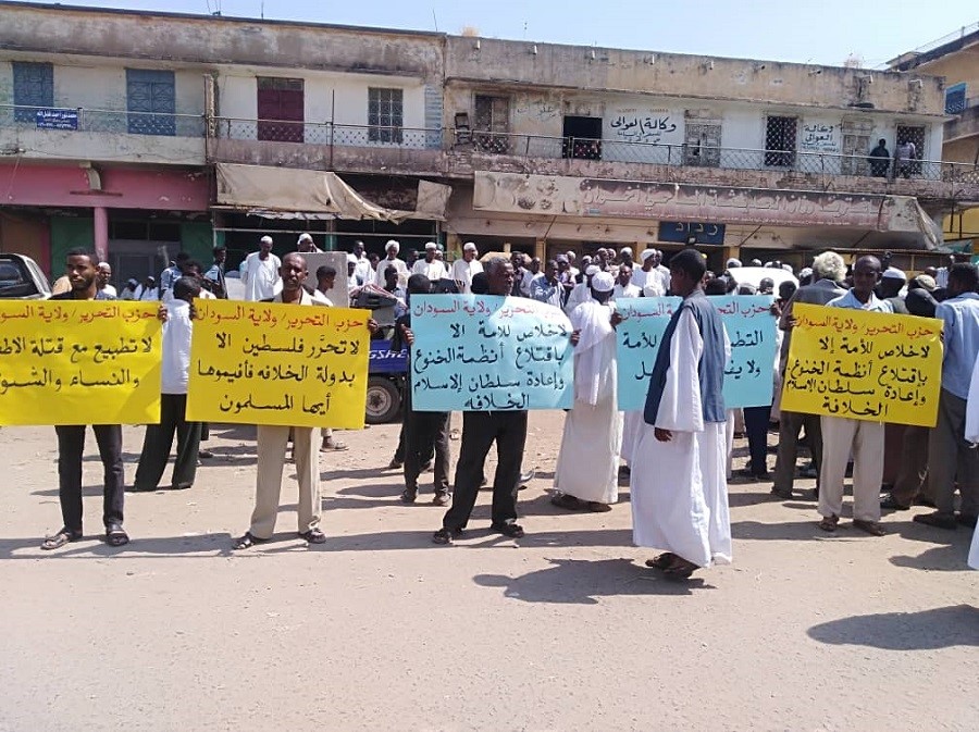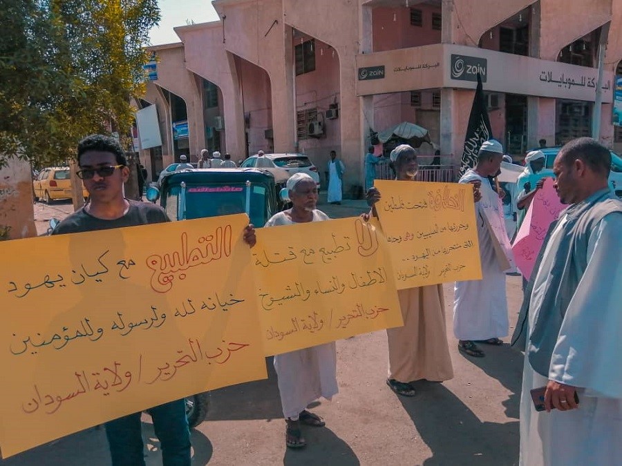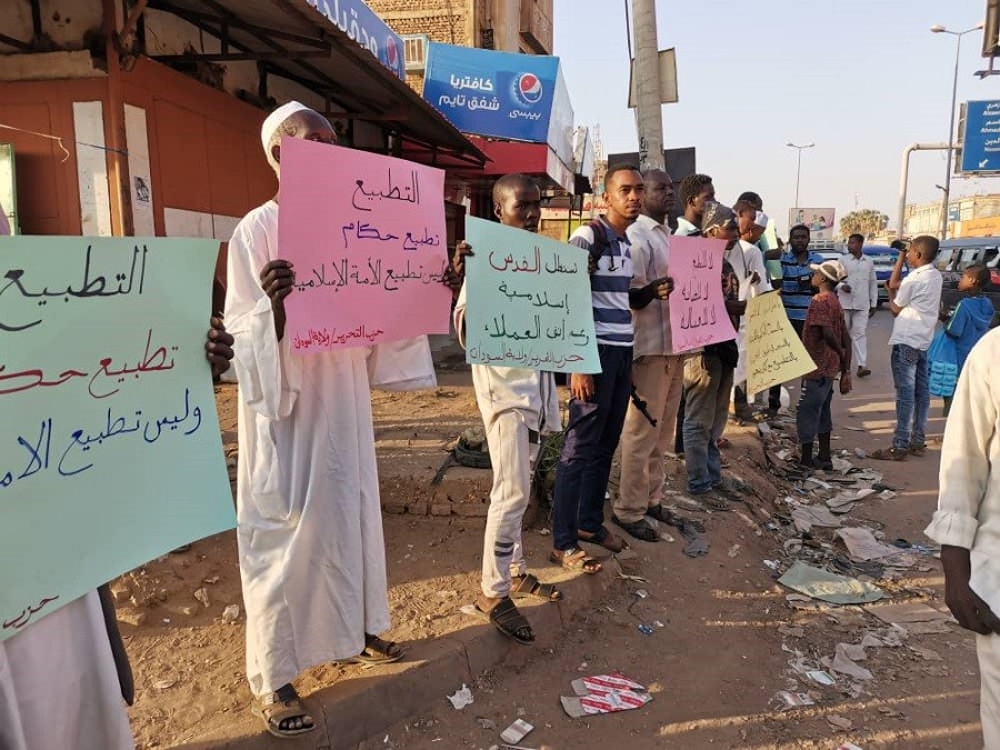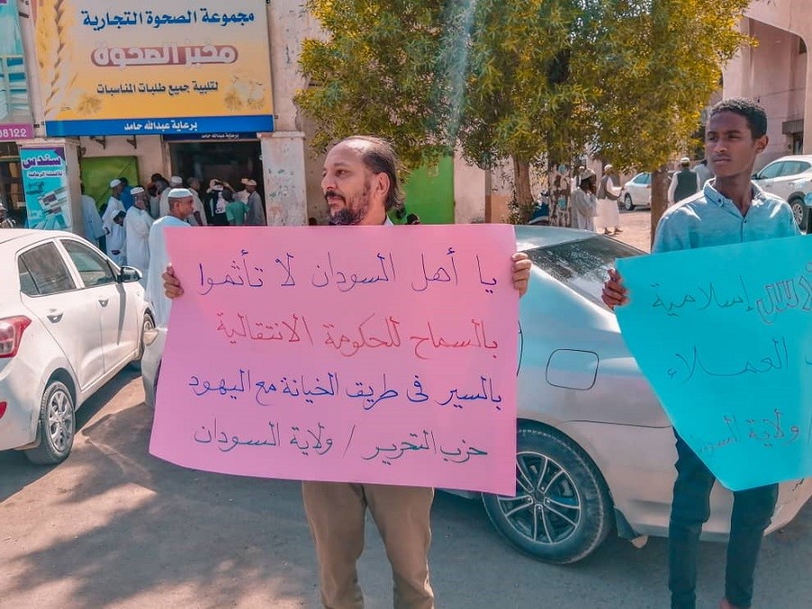 وفي يوم الأحد الموافق 25 تشرين الأول/أكتوبر 2020م قام حزب التحرير/ ولاية السودان بتوزيع نشرة في العاصمة وأغلب مدن السودان المختلفة، بعنوان: "التحاق البرهان وحمدوك بقطار الخيانة يؤكد عمالتهما للأعداء وإخلاصهما لهم ويحتّم العمل لإقامة الخلافة"، وقد تفاعل الناس مع النشرة بالتكبير والتهليل. أما دعاة القبول بهذه الخيانة فقد تكفل عوام الناس بالرد عليهم ولم يستطيعوا المواجهة بفكرهم المنحرف الداعي للقبول بهذه المؤامرة، وفي اليوم ذاته، يوم الأحد 25 تشرين الأول/أكتوبر2020م، كان شباب الحزب بمدينة القضارف في خط الدفاع عن مسرى رسول الله ﷺ حيث أقام شباب حزب التحرير/ ولاية السودان بمدينة القضارف وقفة احتجاجية بعنوان: (التطبيع مع يهود خيانة لله ورسوله والمؤمنين)، أمام مسجد عبد القادر عبد المحسن عقب صلاة الظهر، وقد تخللت الوقفة كلمة ألقاها الأستاذ ميسرة يحيى محمد نور، عبر فيها عن رفض جريمة التطبيع التي أقدمت عليها الحكومة الانتقالية بشقيها المدني والعسكري.