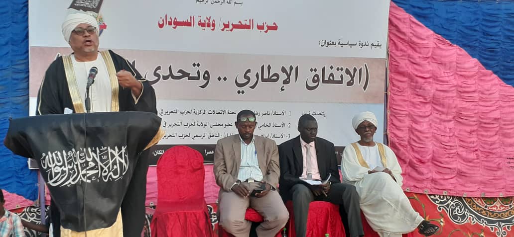 بدأ الأستاذ محمد جامع (أبو أيمن) – مساعد الناطق الرسمي لحزب التحرير في ولاية السودان، ضابط الندوة، بدأ مرحباً بالحضور الكريم، وقدم الشيخ صديق قسم السيد – عضو حزب التحرير ليتلو آيات من الذكر الحكيم، ومن ثم قدم الأستاذ ناصر رضا ليقدم الورقة الأولى بعنوان: "الاتفاق الإطاري سراب بقيعة يحسبه الظمآن ماء"، حيث ذكر الأستاذ ناصر الأساس الذي قام عليه الاتفاق الإطاري؛ وهو دستور تسييرية المحامين، مبيناً أن هذا الدستور تمت صياغته في الخارج وأن القصد من الاتفاق الإطاري والدستور الذي استند عليه هو إبعاد الإسلام وصياغة حياة أهل السودان المسلمين على أساس فصل الدين عن الحياة، وتطبيق أنظمة الكفر الرأسمالية الظالمة على الناس، وضرب وحدة البلاد وتمزيقها بالفيدرالية، وإقرار الحواكير، ثم تسليم ثروات البلاد لما يسمونه بالمستثمرين الأجانب، وضرب مثالاً بوادي الهواد وميناء أبو عمامة.