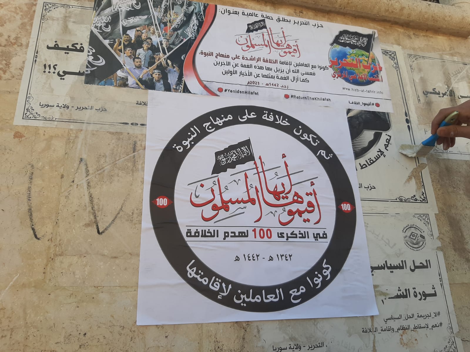 بيان من حرائر عفرين نصرة لشباب حزب التحرير العاملين لإقامة الخلافة في ذكرى هدمها المئوية المعتقلين لدى المخابرات التركية في مدينة اعزاز وذلك على خلفية مشاركتهم في الحملة العالمية التي أطلقها الحزب في الذكرى الـ100 لهدم الخلافة "أقيموها أيها المسلمون".