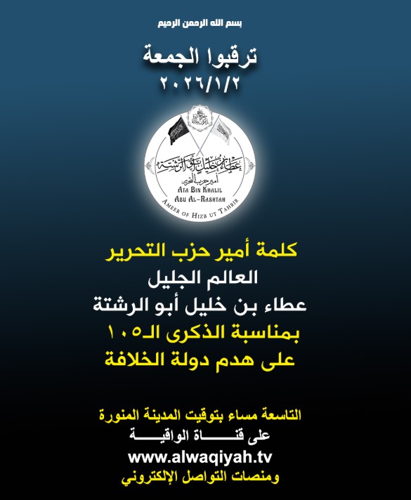 ذكرى هدم الخلافة توجب العمل لإقامتها 25من رجب 1447هـ الموافق 14 كانون الثاني/يناير 2026م |