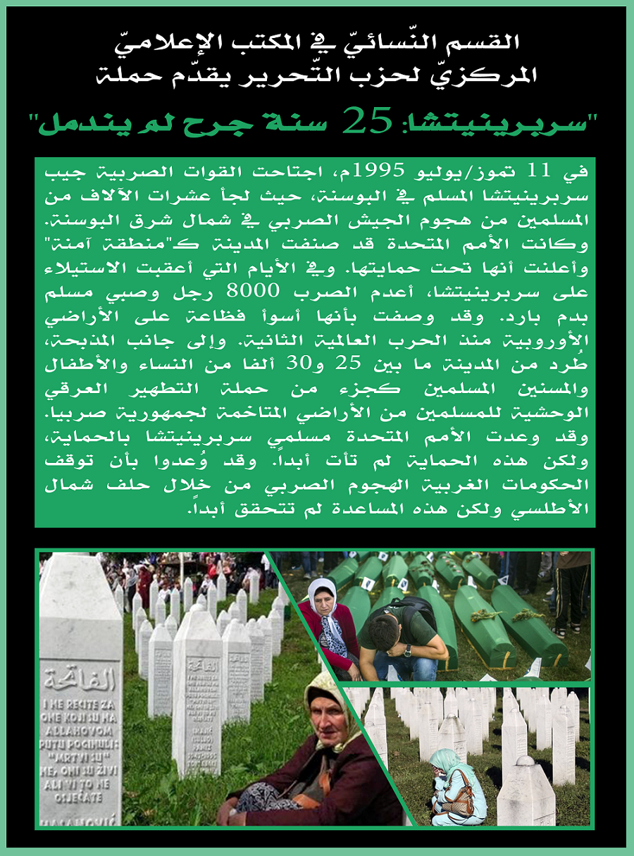 القسم النسائي في المكتب الإعلامي المركزي لحزب التحرير يطلق حملة بمناسبة الذكرى الخامسة والعشرين لإبادة سربرينيتشا الجماعية بعنوان: