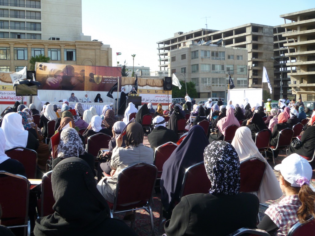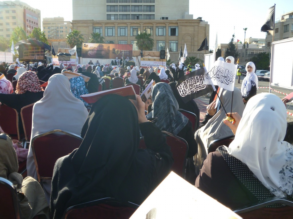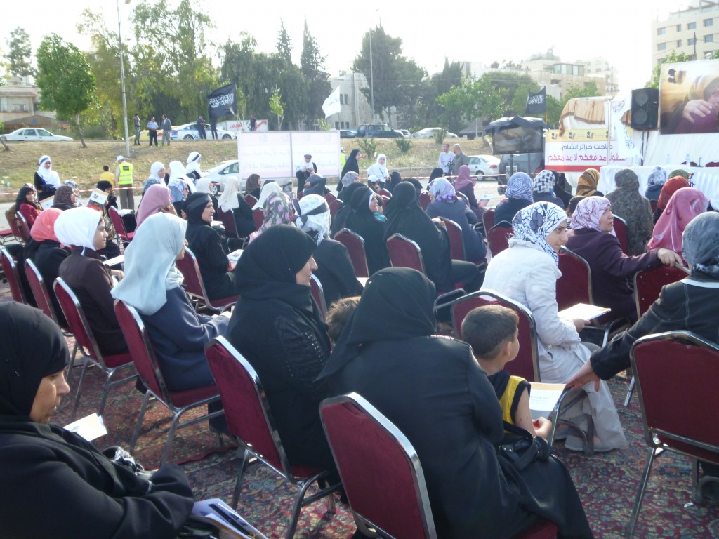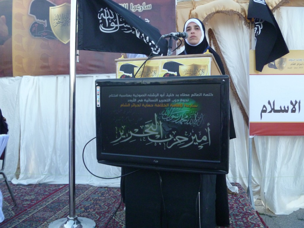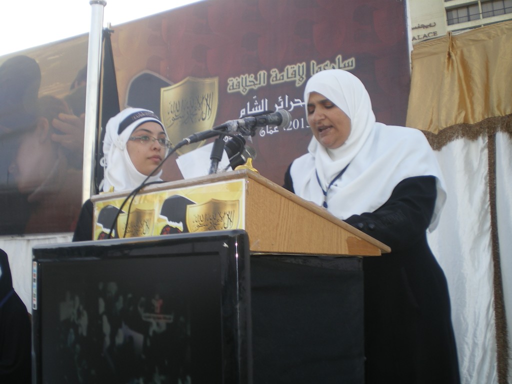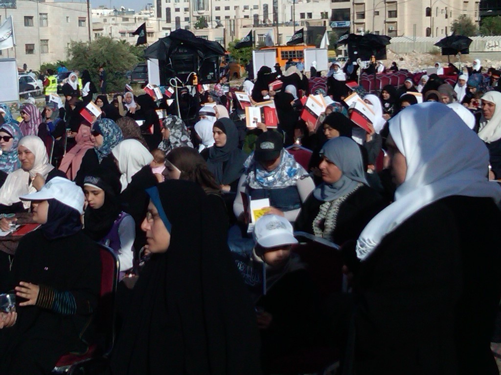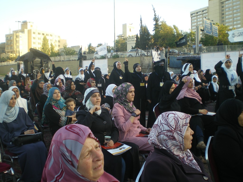 تم بحمد الله مهرجان نصرة حرائر الشام النسائي الذي دعا إليه حزب التحرير / ولاية الأردن يوم السبت 01 رجب 1434هـ الموافق 11 أيار/مايو 2013م والذي يأتي ضمن حملة المسلمين لنصرة ثورة الشام. ووسط وجود أمني كثيف لبّت شابات حزب التحرير وحرائر أردن الشام دعوة الحزب للمهرجان الذي افتتح بكلمة مسجلة لأمير حزب التحرير العالم الجليل العطاء بن خليل أبو الرشتة، وتضمن المهرجان كلمات للأخوات المشاركات ومن نساء الشام اللاتي رَوَيْنَ معاناتهن وصبرهن في مواجهة الطاغية بشار وإقدامهن في الثورة وطلبهن إعادة الخلافة التي ستنقذهن من جور هذه الأنظمة الخائنة لله ولرسوله وللمؤمنين كما تضمن المهرجان عرض فيديو لنشاطات شابات حزب التحرير في العالم لنصرة ثورة الشام.