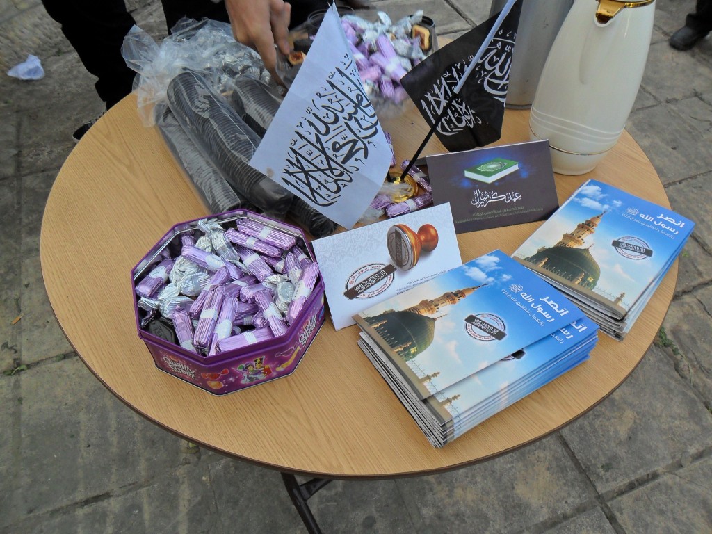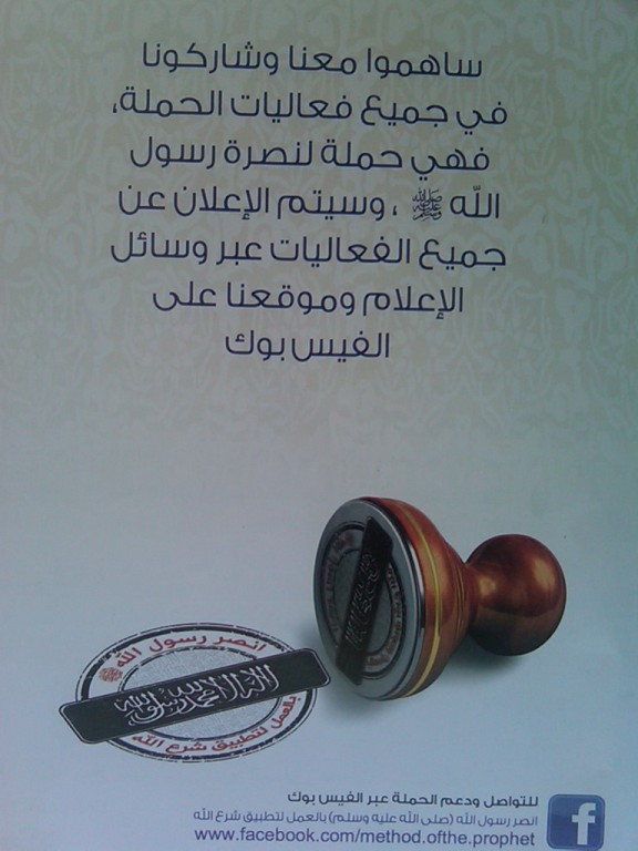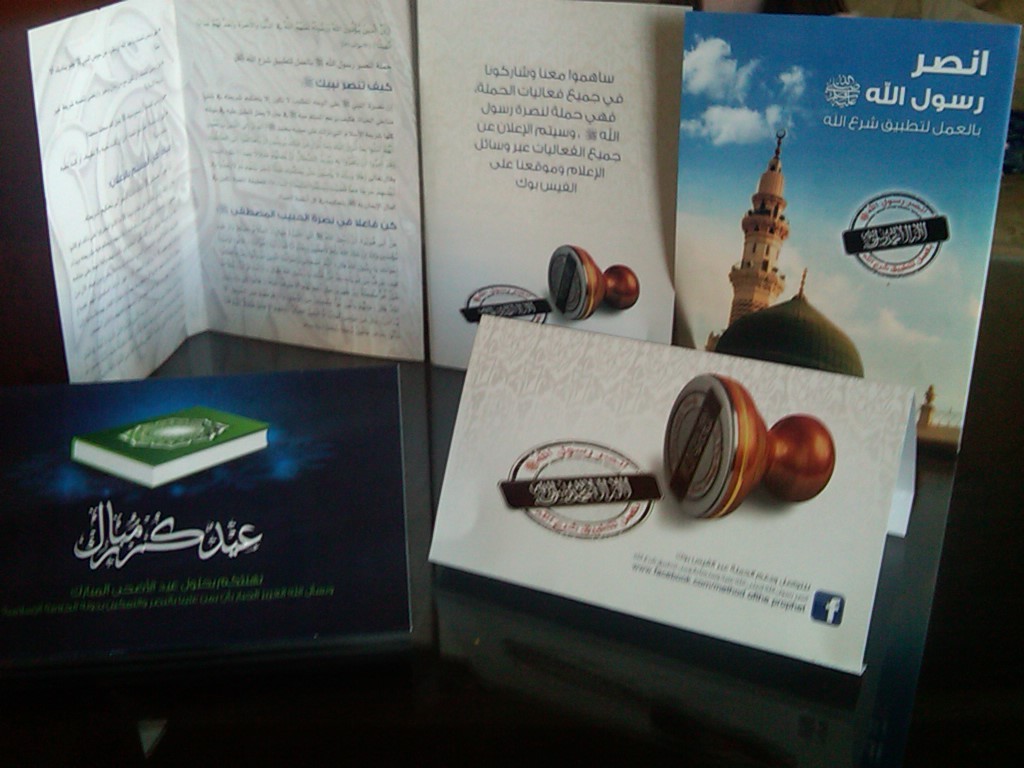 ووزع شباب الحزب خلال الحملة عدداً من الملصقات والبوسترات تبين كيف ننصر نبيناً صلى الله عليه وسلم وكيف نكون فاعلين بنصرة الحبيب المصطفى صلى الله عليه وسلم وكيف يبادر المسلم بالإعلان عن نصرته عليه الصلاة والسلام.