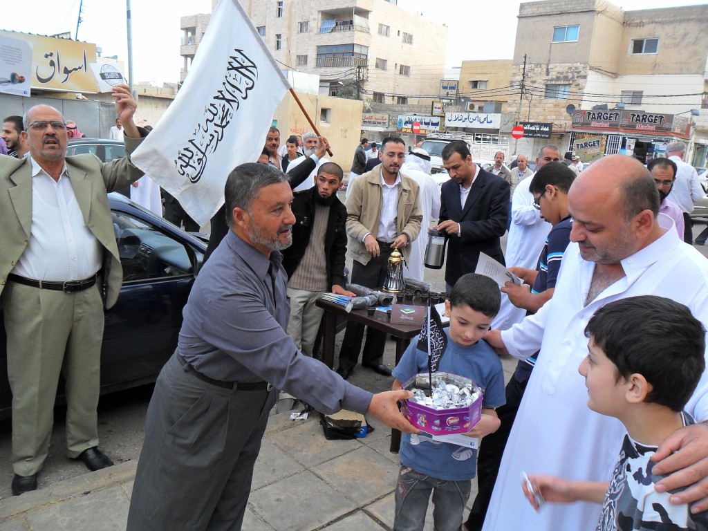 نظم حزب التحرير / ولاية الأردن بعد صلاة عيد الأضحى المبارك من يوم الجمعة 10 ذو الحجة 1433 هـ الموافق 26 تشرين الأول/أكتوبر 2012م حملة لنصرة رسول الله صلى الله عليه وسلم في عدد من مدن الولاية مهنئاً المسلمين بحلول عيد الأضحى المبارك ومبيناً لهم أن نصرة رسول الله صلى الله عليه وسلم تكون بتطبيق شرع الله.