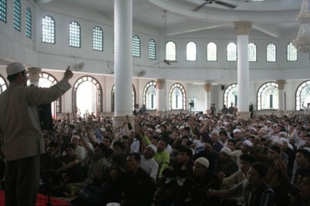 نظم حزب التحرير / إندونيسيا يوم الأحد، الموافق 10 شباط/فبراير 2013، ندوةً في مسجد البينا في مجمع استاد بنغ كارنو في جاكرتا، دعماً لمسلمي سوريا في العمل لإقامة دولة الخلافة.