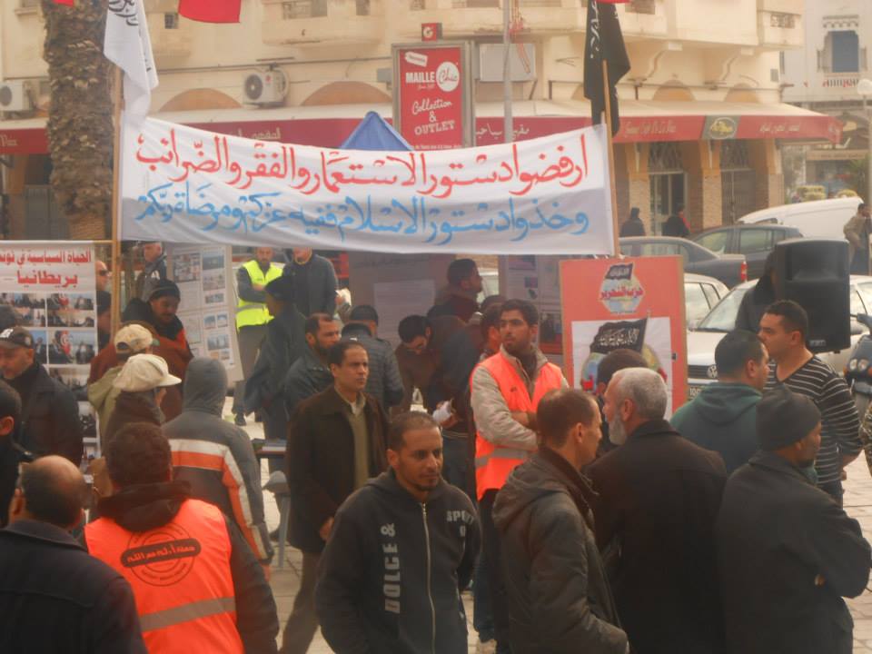 تونس: تظاهرة شعبية بعنوان "أَفَحُكْمَ الْجَاهِلِيَّةِ يَبْغُونَ" نَظّم حزب التحرير في تونس تظاهرة شعبية بعنوان "أَفَحُكْمَ الْجَاهِلِيَّةِ يَبْغُونَ" في ساحة ماربوغ باب بحر أمام قصر البلدية بصفاقس بحضور رئيس المكتب الإعلامي الأستاذ رضا بلحاج ورئيس