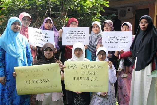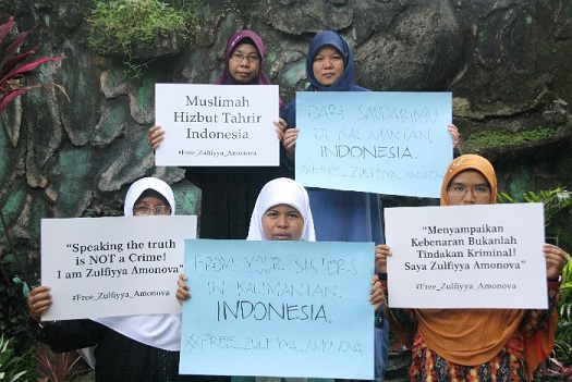 شابات حزب التحرير / إندونيسيا ينتصرن لأختهن زولفيا أمانوفا ويطالبن بالإفراج الفوري عنها رجب الفرد 1435هـ - أيار/مايو 2014م