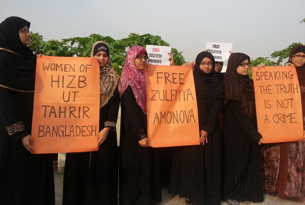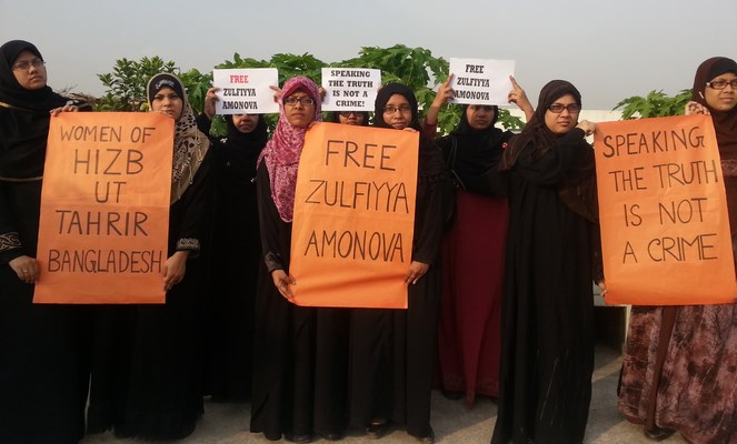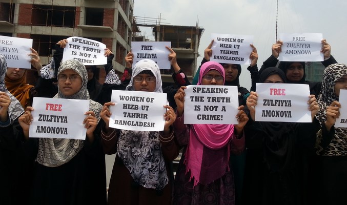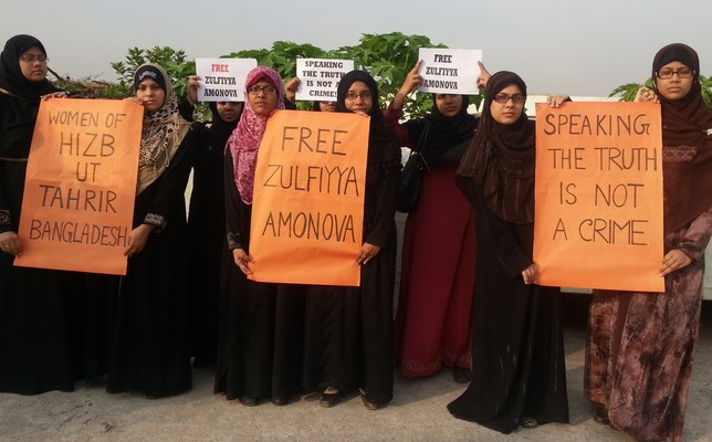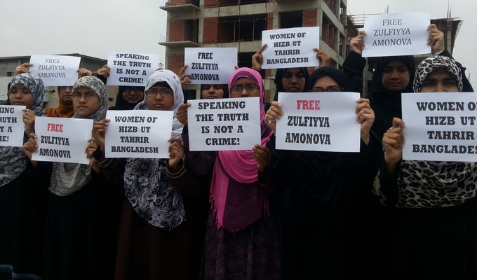 شابات حزب التحرير / ولاية بنغلادش ينتصرن لأختهن زولفيا أمانوفا ويطالبن بالإفراج الفوري عنها رجب الفرد 1435هـ - أيار/مايو 2014م