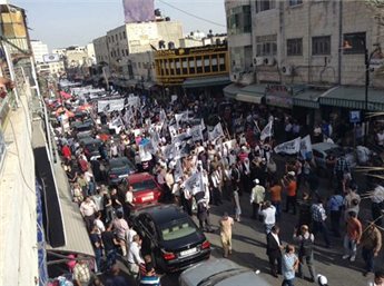 نظم حزب التحرير مسيرة جماهيرية ضخمة في رام الله تحت شعار "المسجد الأقصى يستصرخ الأمة وجيوشها لإقامة الخلافة وتحرير الأرض المباركة".