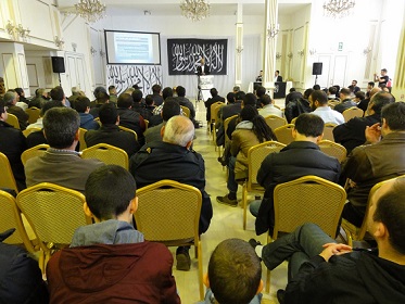 The gathering commenced by reading verses from the Holy Quran, followed by the opening speech. Then the first paper was delivered to the audience by Brother Abu Mohammed from the city of Liege, Belgium titled, "The Existence of God". Followed by the second speech given by Engineer Brother Abu Yassin from the city of Milos, France entitled "The Miracle of the Quran". After listening to the two speeches, time was allotted for an hour of prayer, rest and socializing between the brothers.