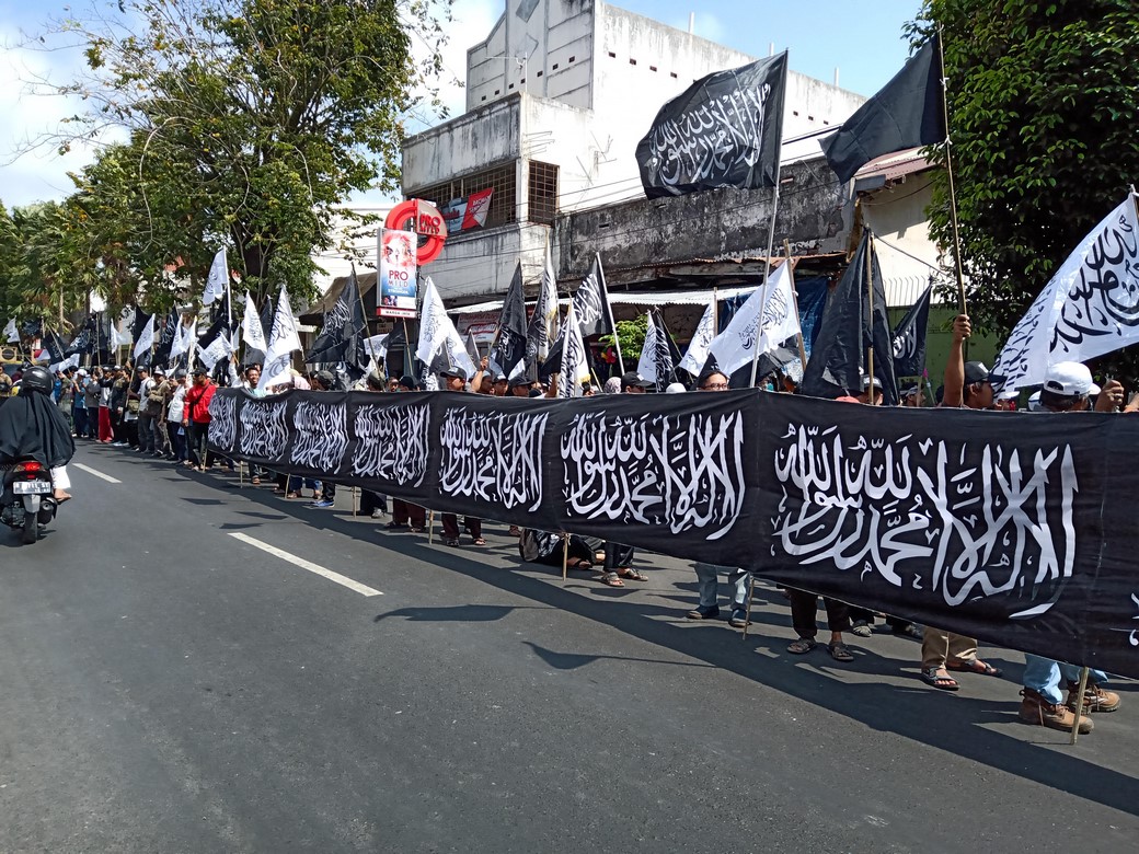 Not less than 50 cities in Indonesia held parades to welcome the Islamic New Year 1441 Hijri with the theme "Hijrah Towards Total Shariah", on Sunday (1/9/2019). The masses carried out convoys on the protocol streets while waving ar-Rayah and al-Liwa flags.