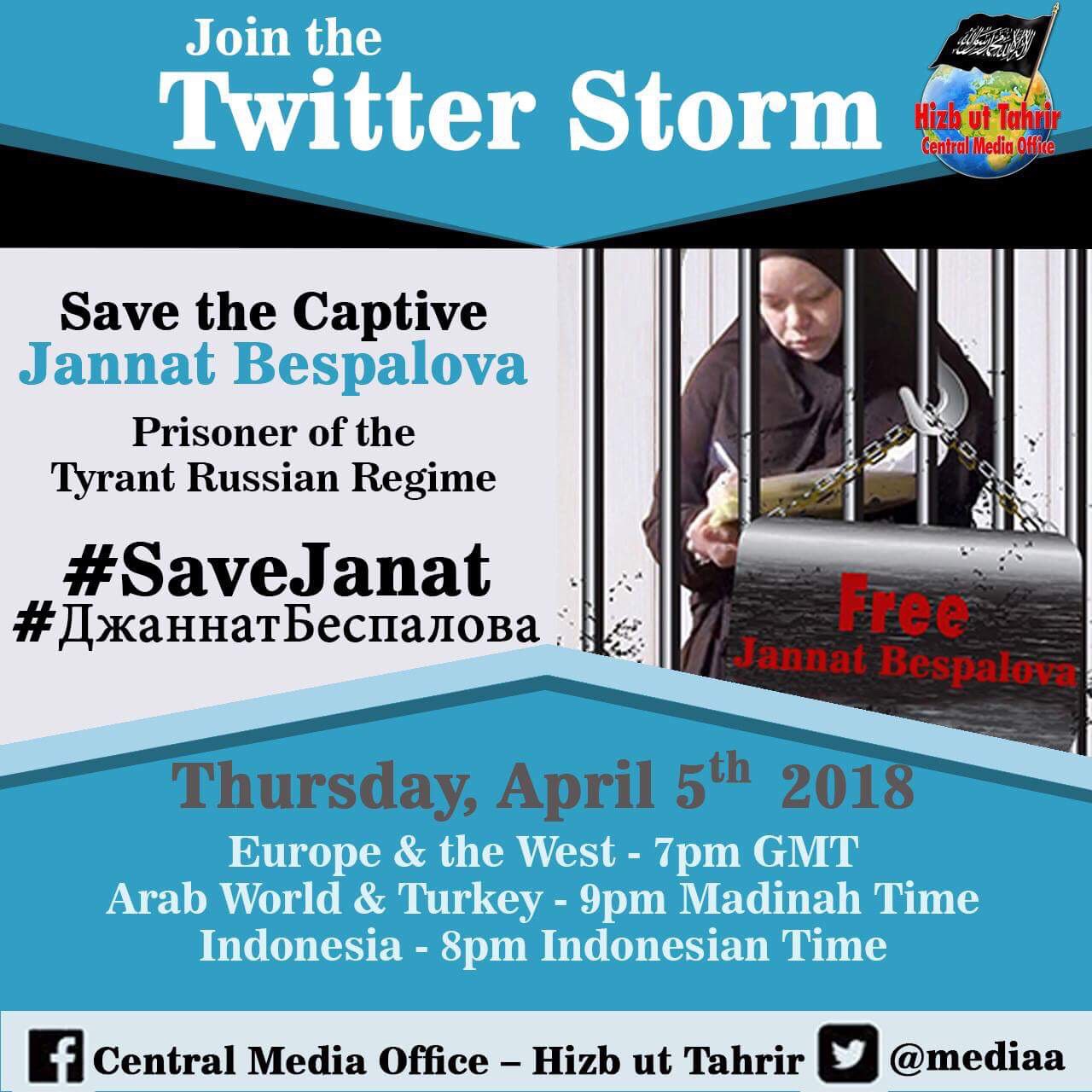 For further details of the Captive Jannat Bespalova held captive in Russia's jails Press Release from the Media Office of Hizb ut Tahrir Russia Russia is the Terrorist and not the Pious Muslim Jannat BespalovaThursday, March 1, 2018 |