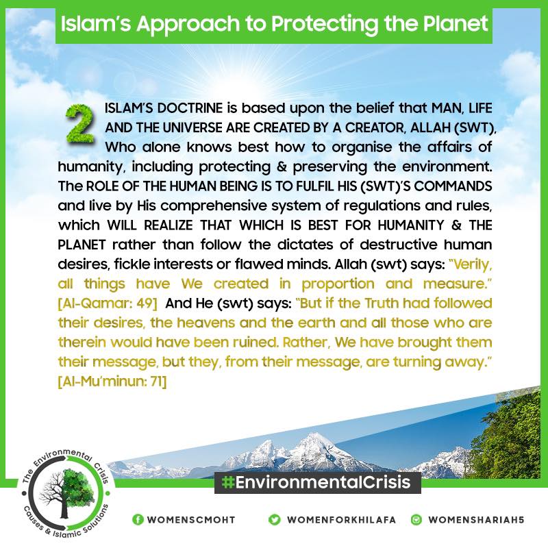 The world is at a crossroad today in terms of climate change and the environmental disasters that plague it. For sure, this planet is not safe as long as the Capitalist system dominates it; and no cure can be found to the world’s ills under its direction and governance. Surely therefore, there needs to be a radically new approach to dealing with this crisis and protecting this planet and humanity from harm and destruction. Therefore, over the next fortnight, the Women’s Section in the Central Media Office of Hizb ut Tahrir will be addressing the true causes of this environmental crisis as well as presenting the solutions that the ideology and system of Islam offers as an alternative to Capitalism in addressing the environmental problems that affect this world today. We will be explaining the Islamic principles, laws and approach to protecting and preserving this planet, including the management of resources in a way which is in harmony with nature while also ensuring economic progress and development for humankind.