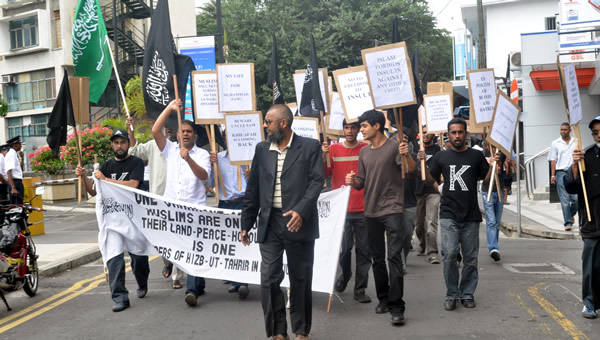 Activists from Hizb ut-Tahrir Mauritius Island organized a rally, protesting the insulting film against the Beloved Prophet (sallallahu wa alaihi wa sallam). The rally proceeded to the American embassay on the island which they handed them a letter of objection.