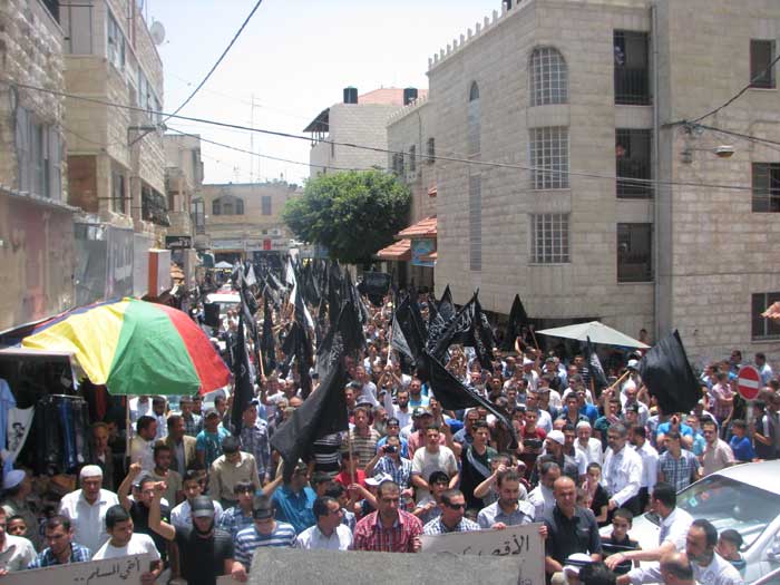 Hizb ut Tahrir / Palestine organized a massive rally in Tulkarem on Saturday, 29 Rajab 1434 AH corresponding to 08 June 2013, with thousands marching chanting for Khilafah "Caliphate" marking the anniversary of the destruction of the Khilafah "Caliphate" under the title of "Khilafah "Caliphate" will Liberate Al-Aqsa , Rescue the Muslims and Save Humanity."