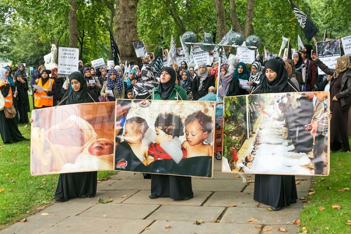 Hizb ut Tahrir/ Britain will organize a large demonstration in support of the women, children, and elderly of al- Sham; who at the hands of the butcher, criminal, and tyrant Bashar; the enemy of Allah and his Messenger (saw) has massacred their blood. The demonstration will be held from Edgware Road in London, ending in front of the Syrian Embassy on Sunday, September 22, 2013.