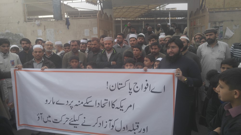 O Muslims of Pakistan! For the protection of Masjid Al-Aqsa, Hizb ut Tahrir Wilayah Pakistan is amongst you now, addressing you through protests, meetings, leaflet distribution and social media. It is assuring you that our armed forces are not only willing, they are capable of liberating Masjid Al-Aqsa. You must work with Hizb ut Tahrir to uproot these rulers, the defenders of the crusaders and the Jewish occupation.