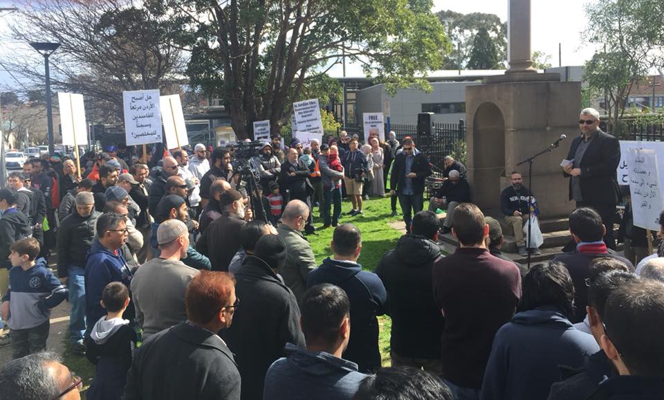 Hizb ut Tahrir / Australien organisierte in Lakemba/Sydney eine Kundgebung zur Unterstützung vom Mitglied des Medienbüros von Hizb ut Tahrir Australien Ingenieur Ismail alWahwah „Abu Anas“ derbei seiner Ankunft am International Airport Amman zwecks Familienbesuch in Jordanien grundlos von der unterdrückenden Regierung verhaftet wurde.