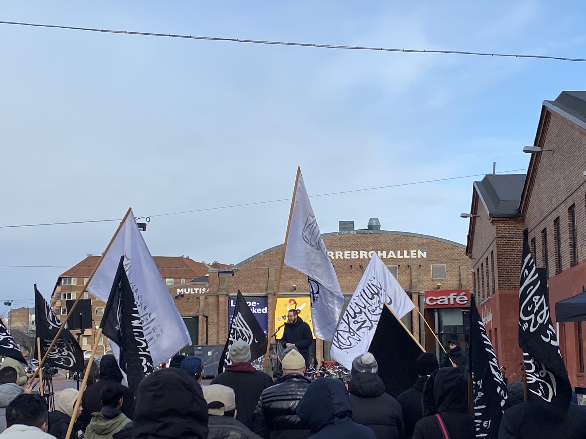 Hizb ut Tahrir / Dänemarkorganisierte einen Protest auf dem Roten Platz in Norbro in Kopenhagen mit dem Titel:„Stoppt den systematischen Missbrauch und die Verfolgung von Muslimen! “