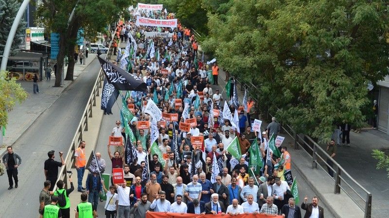 د ماسپښين تر لمانځه وروسته، په استانبول کې له «فاتح جومات» څخه تر «بېيازيت مېدان» پورې، په انقره کې له «کوچاتپه جومات» څخه تر «صحیه مېدان» پورې او په شانلي اورفا کې له «علي شلي پارک» څخه تر «رابعه مېدان» پورې مسلمانانو د «لا اله الا الله» بيرغونو، تکبيرونو او ترانو تر سيورې لاندې د طوفان الأقصی او د غزې د خلکو هرکلی وکړ او تاريخي صحنې يې جوړې کړې.
