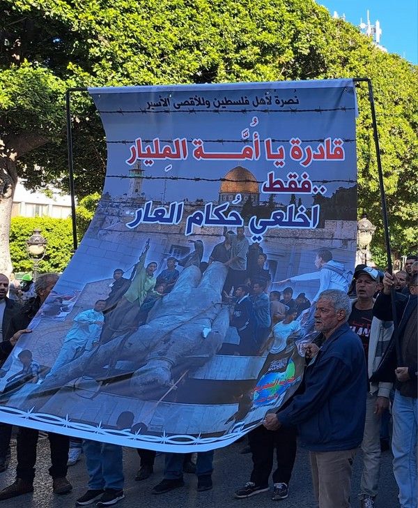 Mbele ya ushujaa ulioonyeshwa na mujahidina mashujaa katika Ardhi Iliyobarikiwa (Palestina) chini ya kauli mbiu (Kimbunga cha Al-Aqsa) dhidi ya umbile la Kiyahudi linaloendelea na kushambulia Msikiti uliobarikiwa wa Al-Aqsa, uzingiraji wake na upigaji mabomu wake unaoendelea kwa miaka 18 kwenye Ukanda wa Gaza, na mbele ya mauaji ya kikatili yaliyofanywa na umbile hili halifu katika miezi iliyopita kwa Waislamu waliotengwa katika Ukanda wa Gaza, ambayo yamesababisha kuuawa na kujeruhiwa zaidi ya wanaume na wanawake elfu 100 wa Kiislamu, Hizb ut Tahrir / Wilayah ya Tunisia, iliandaa matembezi ili kuyataka majeshi ya Waislamu yataharaki kuwanusuru Waislamu wanyonge katika Ardhi Iliyobarikiwa (Palestina) na kukomboa Msikiti uliobarikiwa wa Al-Aqsa na Palestina yote inayokaliwa kimabavu kuanzia mto wake hadi bahari yake kutokana na makucha ya Mayahudi wauwaji wahalifu.