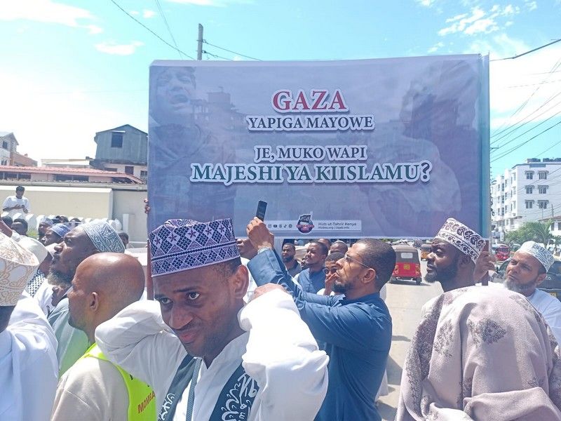 Yahudi varlığının Gazze’de işlemekte olduğu kesintisiz soykırım karşısında Hizb-ut Tahrir / Kenya, 18 Nisan Cuma günü Nairobi ve Mombasa’da Cuma namazının ardından protesto gösterileri düzenledi. Mombasa’da protesto el-Nur Camii önünde, Nairobi’de ise Eastleigh Caddesi’ndeki el-Hidaye Camii’nde düzenlendi.