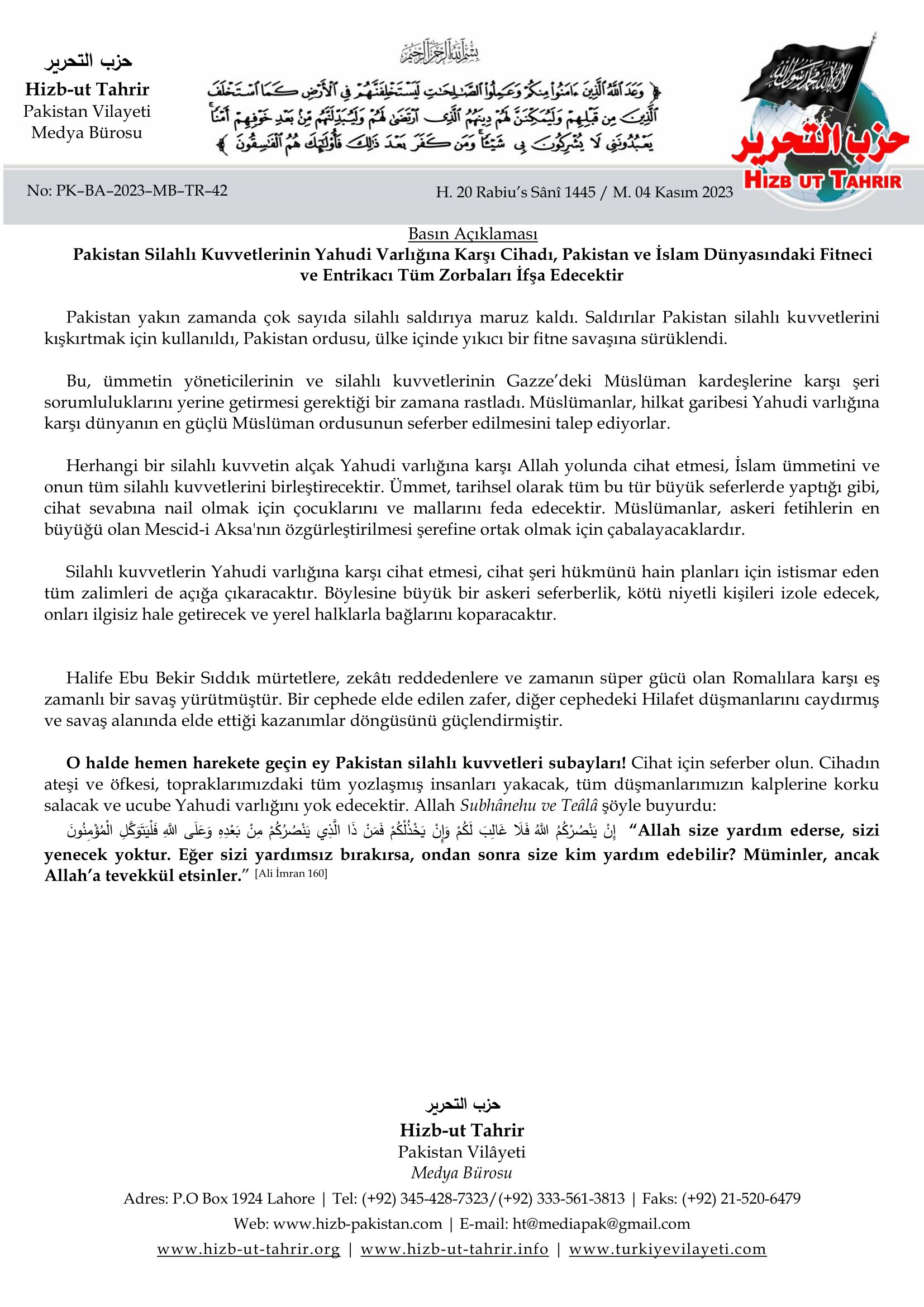 | حزب التحرير Hizb-ut Tahrir Pakistan Vilâyeti Medya Bürosu |
