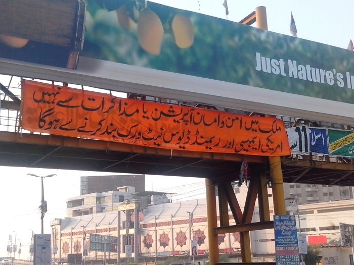 Hizb-ut Tahrir / Pakistan Vilayeti, Pakistan'ın yirmi milyon nüfusu ile en büyük şehri olan Karaçi'nin önemli yerlerine büyük pankartlar astı. Pankartlarda şu ifadeler yazılıydı: Amerika'nın Raymond Davis suç çetesi Pakistan'dan yok edildiği zaman ancak barış sağlanacaktır. Hilafet, Pakistan'daki kaos ve patlamaların nedeni olan Amerikan varlığını sona erdirecektir.