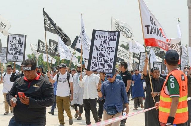 Mübarek Mescid-i Aksa'ya yönelik saldırılarını ve Gazze Şeridi'ne yönelik 17 yıldır devam eden kuşatma ve bombardımanını sürdüren gaspçı Yahudi varlığına karşı El-Aksa Tufanı sloganıyla mübarek topraklar Filistin'de kahraman mücahitlerin gerçekleştirdiği kahramanlıkların ışığında, Hizb-ut Tahrir/Malezya, Putrajaya'daki Putra Camii önünde toplanarak Malezya Başbakanı ve diğer Müslüman yöneticilere, Müslüman orduları derhal mübarek Filistin topraklarına gönderme yükümlülükleri konusunda çok güçlü bir mesaj iletti. Göstericiler camiden yaklaşık bir kilometre uzaklıktaki Başbakanlık binasına doğru yürüyüşe geçti. Hizb-ut Tahrir / Malezya Sözcüsü Üstad Abdul Hakim Osman liderliğindeki bir heyet, Malezya Başbakanının bir temsilcisi tarafından teslim alınan bir muhtırayı teslim etti.