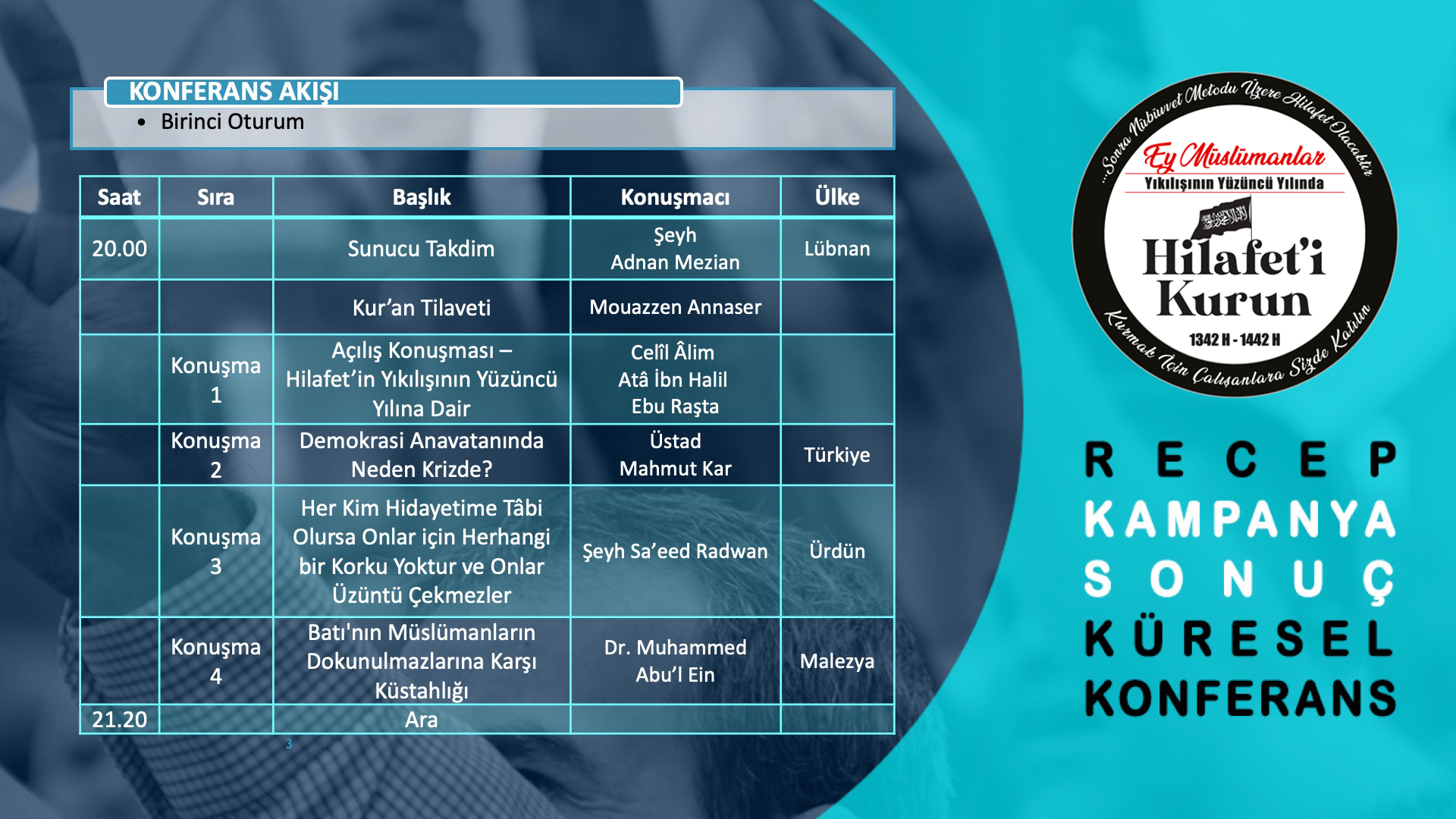 - Yüzüncü Yıl Kampanyası Faaliyetlerinin Kapanış Küresel Konferansı İçin Canlı Yayın Bağlantıları -