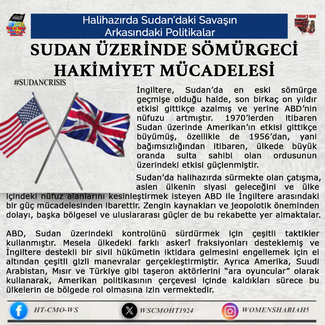 Bu video, Hizb ut Tahrir Merkez Medya Ofisi Kadınlar Bölümü tarafından başlatılan ve “Sudan Savaşı: Bir Sömürgeciliğin, İhanetin ve Aldatmacanın Hikayesi” başlıklı küresel kampanyanın bir parçasıdır. Bu kampanya, “Unutulmuş Savaş” olarak adlandırılan ve ülkeyi saran mevcut çatışmanın sonucu olarak Sudan'daki Müslümanları etkileyen ve giderek kötüleşen insani felakete uluslararası dikkat çekmeyi amaçlamaktadır.