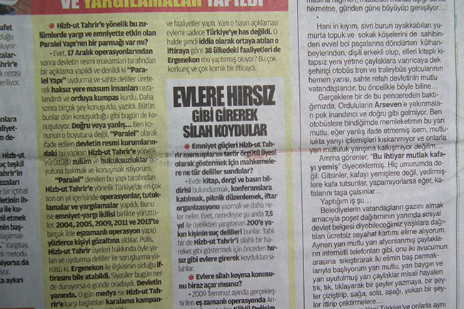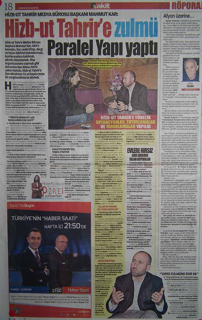 “Paralel” denilen bu yapı tarafından Hizb-ut Tahrir’e yönelik Türkiye’de en çok son on yıl içerisinde operasyonlar, tutuklamalar ve yargılamalar yapıldı. Bunu ise emniyet-yargı ikilisi birlikte yürüttüler. 2004, 2005, 2009, 2011 ve 2013’te birçok ilde eşzamanlı operasyon yapıp yüzlerce kişiyi gözaltına aldılar. Polis, Hizb-ut Tahrir üyeleri hakkında öyle yalan ve uydurma deliller ile soruşturma yürüttü ki, Ergenekon ile ilişkisinin olduğu iftirasını bile atabildi. Siyasiler bugün nerde duruyorsa o günde oradaydı. Devletin yanında. O gün medya ise Hizb-ut Tahrir’e karşı başlatılan karalama kampanyasına topyekûn ortak oldu.