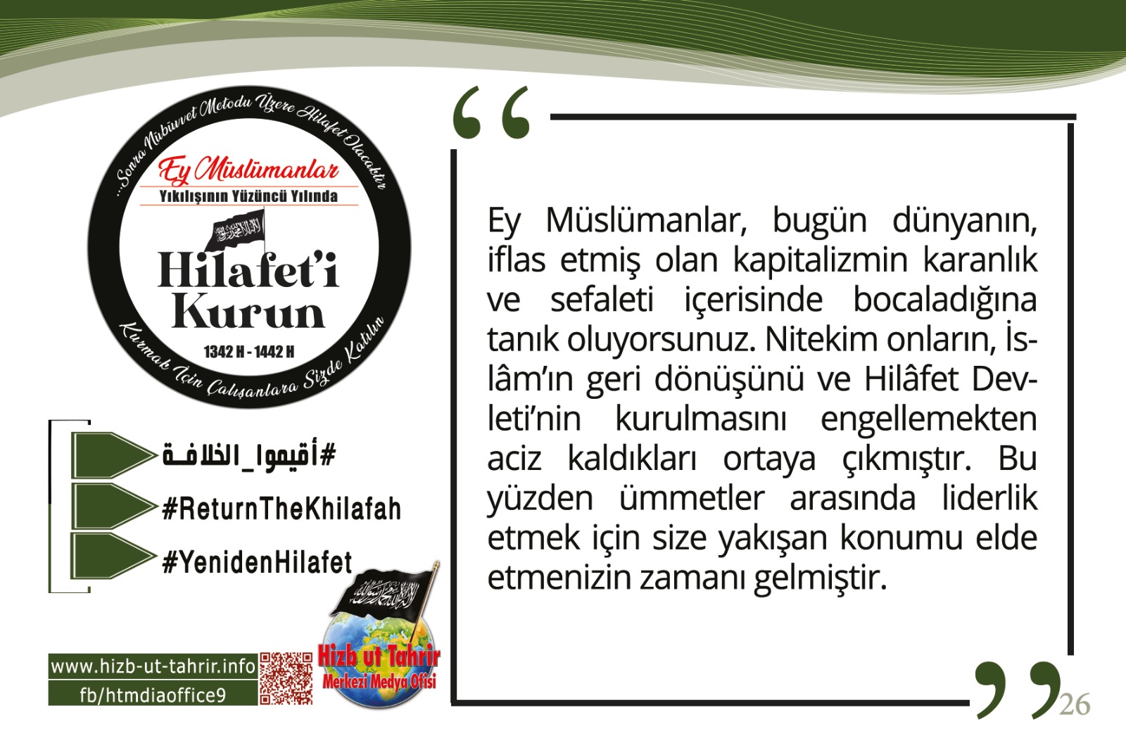 Hilafetin Yıkılışının 100. Yılı Sebebiyle Hizb-ut Tahrir’den Küresel Kampanya