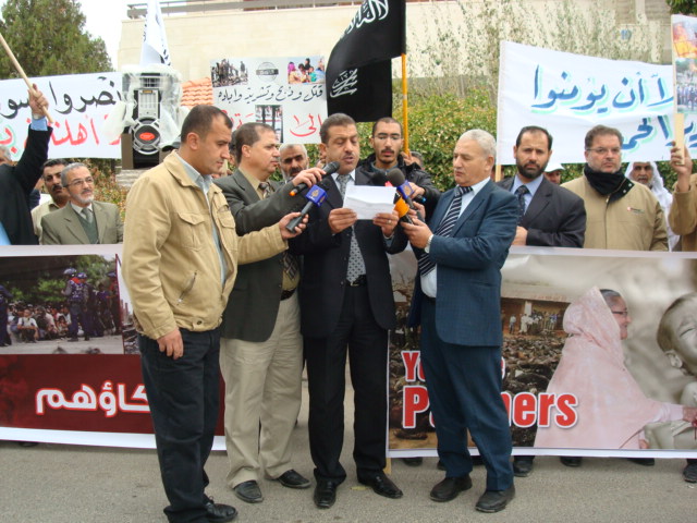 Allah Subhanehu ve Teala'nın lütfu ve inayetiyle Hizb-ut Tahrir Ürdun Vilayeti, 26 Zilhicce 1433 Hicri, 11 Aralık 2012 Miladi Pazar günü, Amman'da Bangladeş Elciliği önünde çok sayıda güvenlik güçlerinin gözetimi altında «Sizler onların ortağısınız» başlıklı bir protesto gerçekleştirmiştir.