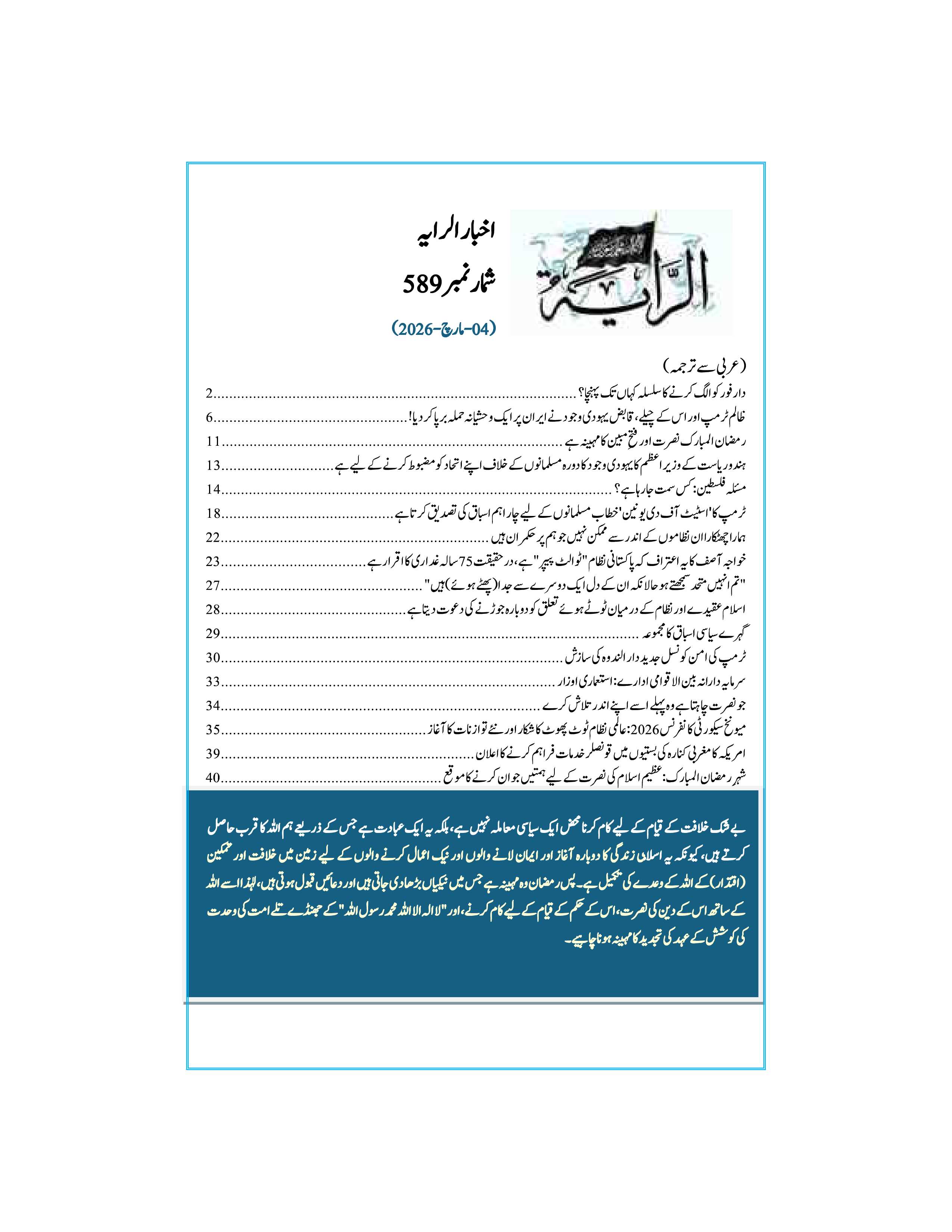 15 من رمــضان المبارك 1447هـ | جمعرات, 05 مارچ 2026 سب سے پہلے تبصرہ کرنے والے بنیں فونٹ سائز فونٹ سائز گھٹائیں increase font size بسم الله الرحمن الرحيم رایہ اخبا ر شمارہ نمبر 589 ویب سائٹ پی ڈی ایف کے لئے: یہاں کلک کریں 15 رمضان 1447ھ - 4 مارچ 2026 Last modified onجمعرات, 05 مارچ 2026 00:25 Latest from پاکستان کے حکمران اللہ ﷻ اور اس کے بندوں کے سامنے بے شرمی کی ہر حد پار کر چکے ہیں ولایہ ترکیہ خلافت کی تباہی کی 105ویں سالگرہ کی یاد میں عوامی تقریبات! الرایہ اخبار: شمارہ 589 کی نمایاں سرخیاں مسلمانوں کا فخر کے ساتھ مسلمانوں کو ذبح کرنے کے بجائے متفرقات الرایہ – شمارہ نمبر 589 More in this category: « نصرة میگزین / شمارہ 89 Leave a comment Make sure you enter the (*) required information where indicated. HTML code is not allowed. Name * ای میل * Website URL Enter the two words you see below Message * آپ کا پیغام یہاں درج کریں ... اوپر کی طرف جائیں